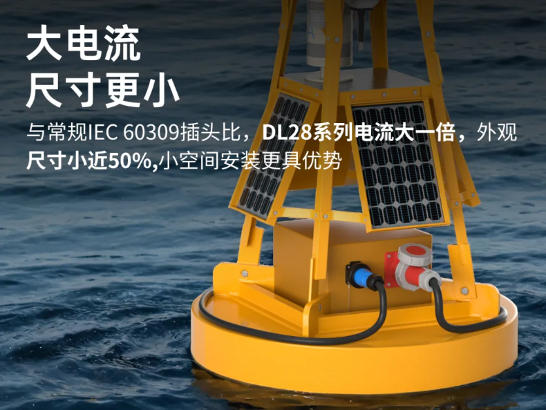 相比傳統(tǒng)“大個(gè)子”IEC60309插頭,DL28工業(yè)連接器則盡顯小巧,尺寸減半,重量減輕,可有效降低監(jiān)測平臺(tái)負(fù)載并節(jié)省寶貴空間,充分契合海洋監(jiān)測設(shè)備輕量化、緊湊化的需求。其優(yōu)勢(shì)主要有: