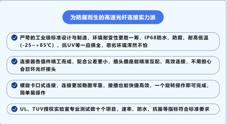 不難看出,這款YM系列工業(yè)級(jí)光纖連接器,是為防腐而生的高速光纖連接實(shí)力派,可保障在戶外、船舶、醫(yī)療等場(chǎng)景下的可靠使用,性能更穩(wěn)定。
