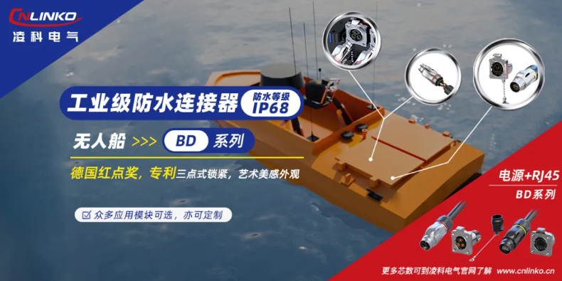 對于無人船,需要采納電源連接器來為船上動力設(shè)備提供電源輸入支持;需要信號連接器實現(xiàn)控制信號的傳導(dǎo)。凌科BD系列的電源連接器與RJ45信號連接器都有在無人船上使用,以實現(xiàn)上述功能。
