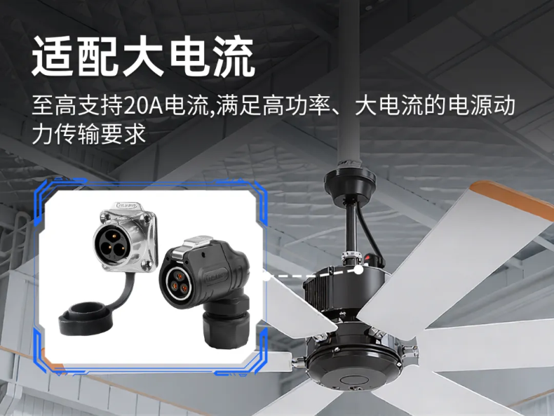 工業(yè)級風扇散熱器功率較大,通常需要大電流輸入支持。所用電源連接器要能滿足大電流持續(xù)穩(wěn)定連接,且產(chǎn)熱少,溫升不宜過高。