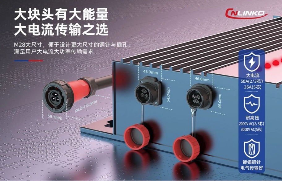 儲(chǔ)能等采用的鋰電池系統(tǒng),通常需要承載更高的電流。連接器需要能安全地傳輸大電流,且不會(huì)產(chǎn)生過(guò)熱等問題。凌科這款大尺寸的工業(yè)級(jí)連接器,具備傳輸最大50A的大電流的能力,是大電流連接應(yīng)用中的一款極具競(jìng)爭(zhēng)力的產(chǎn)品,可滿足鋰電池系統(tǒng)對(duì)大電流傳輸?shù)姆€(wěn)定和安全方面的技術(shù)要求。