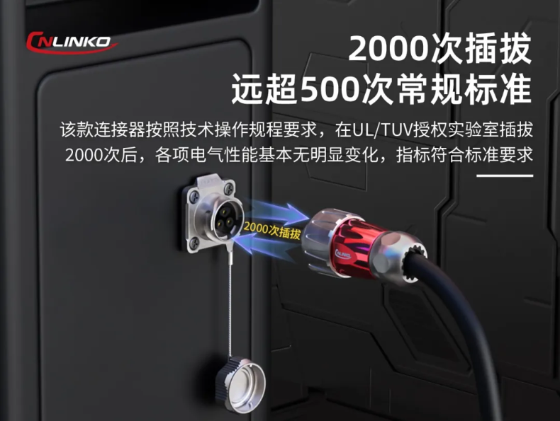 ①插拔壽命長:在UL/TUV授權(quán)實(shí)驗(yàn)室插拔2000次后,各項(xiàng)電氣性能基本無明顯變化,滿足電動(dòng)摩托車頻繁需充電的訴求;