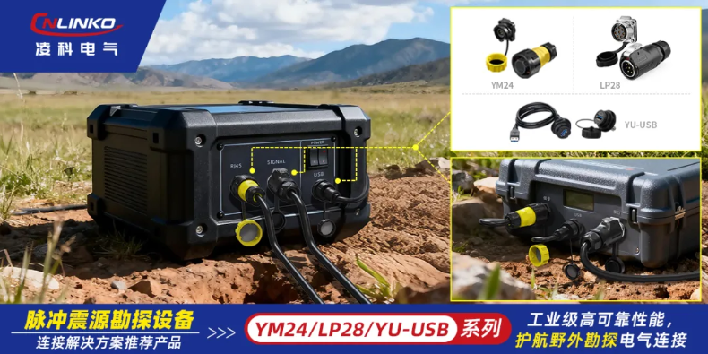 凌科電氣YM24系列RJ45工業(yè)防水連接器、LP28系列8芯連接器、YU系列USB工業(yè)防水連接器,被脈沖震源勘探設(shè)備用戶采納,不僅滿足了電氣和接口的要求,而且還能確保在野外等復(fù)雜場景下實現(xiàn)高可靠與長期穩(wěn)定使用的訴求。
