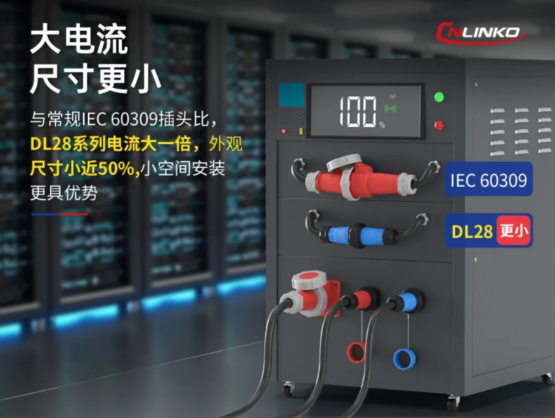 總之,DL28系列工業(yè)級連接器,其設(shè)計(jì)初衷和核心點(diǎn)就是:體積較IEC60309插頭縮減近50%,載流能力提升一倍,精準(zhǔn)滿足小空間布線對大電流傳輸?shù)目臻g與性能需求,成為緊湊型設(shè)備高安全供電的行業(yè)新標(biāo)桿,是時(shí)下IEC60309插頭的理想替代方案。