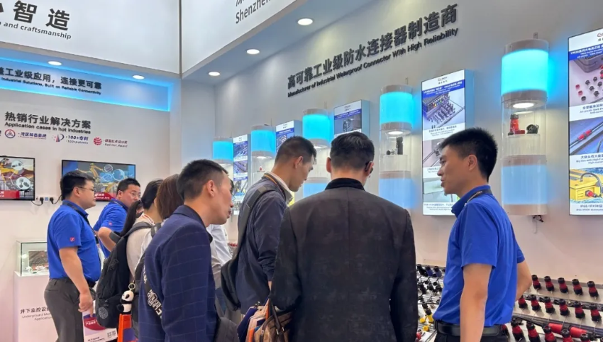 展會首日,凌科展臺的流量如初夏一樣熾烈,一批批來自國內(nèi)以及世界各地的參觀者頻頻前來打卡。他們紛紛在凌科展位區(qū)駐留,細細觀看展區(qū)陳列的各種精工打造的連接器產(chǎn)品,并不時與凌科工作人員互動交流。