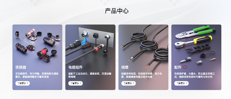 我們構(gòu)建了“四大產(chǎn)品矩陣”:連接器、電纜組件、線纜、配件,搭配結(jié)構(gòu)化的下拉菜單與清晰導(dǎo)航,幫助你一鍵直達(dá)所需。