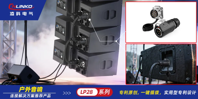 凌科的LP28系列8芯工業(yè)防水連接器,就在某大型戶外音響系統(tǒng)中被客戶選用。