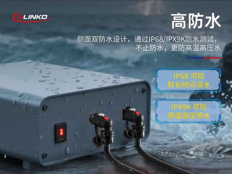 創(chuàng)新采用側(cè)面雙防水設(shè)計(jì),實(shí)現(xiàn)更強(qiáng)防水性能,已通過(guò)嚴(yán)格的IP68(長(zhǎng)期浸水防護(hù))及IPX9K(高溫高壓水噴射防護(hù))測(cè)試。即使面對(duì)高溫高壓水環(huán)境,亦能從容應(yīng)對(duì),保障設(shè)備穩(wěn)定運(yùn)行。